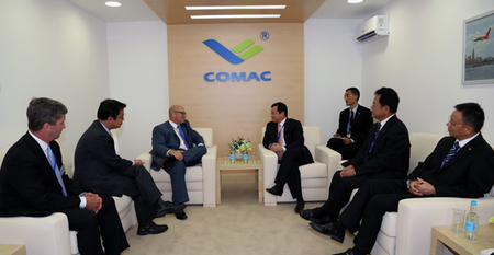 中國(guó)經(jīng)濟(jì)網(wǎng)訊 2012年7月9日,在第四十八屆范堡羅航展期間,中國(guó)商飛公司總經(jīng)理賀東風(fēng)與各航空企業(yè)界人士就深化溝通合作、促進(jìn)雙方共同發(fā)展等問(wèn)題進(jìn)行了深入交流。公司獨(dú)立董事李豐華、總會(huì)計(jì)師田民出席相關(guān)會(huì)見活動(dòng)。