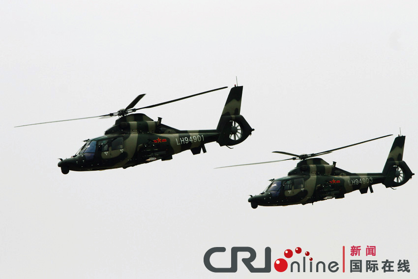 解放軍直-9WZ武裝直升機(jī)進(jìn)行飛行表演。戴爽 攝