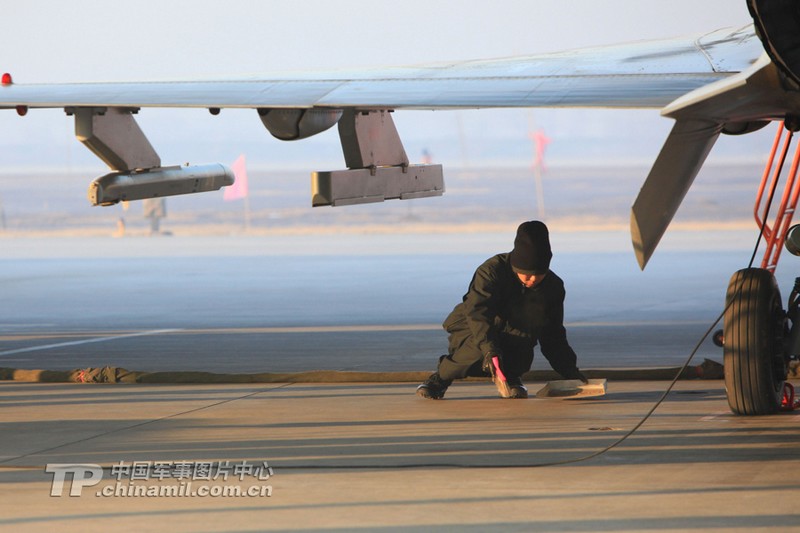 2013年1月6日,空軍華北機場某航空兵師在這一天新年首飛。在進行了兩天的充分準備之后,機務(wù)人員在早晨6點30分就準時來到外場。上午9點整,數(shù)架殲十戰(zhàn)機準時升空,開始了一天的訓(xùn)練。記者在外場有幸記錄下這冬日陽光里精彩的飛行場景。(來源:中國軍網(wǎng) 苑小偉攝影報道)