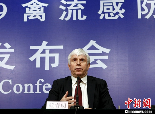 圖為世界衛(wèi)生組織駐華代表藍(lán)睿明在新聞發(fā)布會(huì)上!z影:李慧思