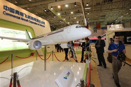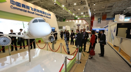 這是中國商飛公司第2次參加巴黎航展,中國商飛展臺(tái)位于巴黎航展展館5號(hào)館B片區(qū),面積約250平方米,展示了C919大型客機(jī)模型和ARJ21-700飛機(jī)模型。在此次展示的飛機(jī)模型中,全面展示了C919大型客機(jī)混合級(jí)布局,ARJ21-700飛機(jī)混合級(jí)、全經(jīng)濟(jì)級(jí)、行政機(jī)和公務(wù)機(jī)布局。