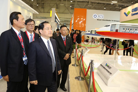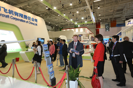 中國經(jīng)濟(jì)網(wǎng)航空6月18日訊 2013年6月17日,第五十屆巴黎國際航空航天展覽會(huì)在法國巴黎開幕,中國商飛公司攜C919大型客機(jī)模型、ARJ21-700飛機(jī)模型參加本屆航展,全面展示C919大型客機(jī)和ARJ21-700飛機(jī)研制進(jìn)展。董事長(zhǎng)金壯龍率團(tuán)參加本屆航展、副董事長(zhǎng)滕一龍、總會(huì)計(jì)師田民參加航展相關(guān)活動(dòng)。 航展期間,金壯龍、滕一龍和田民等參觀了賽峰集團(tuán)、MOOG公司、中航工業(yè)、愛勵(lì)國際、CFM公司等參展商展臺(tái),并與各公司管理層就加強(qiáng)合作進(jìn)行了深入的會(huì)談。