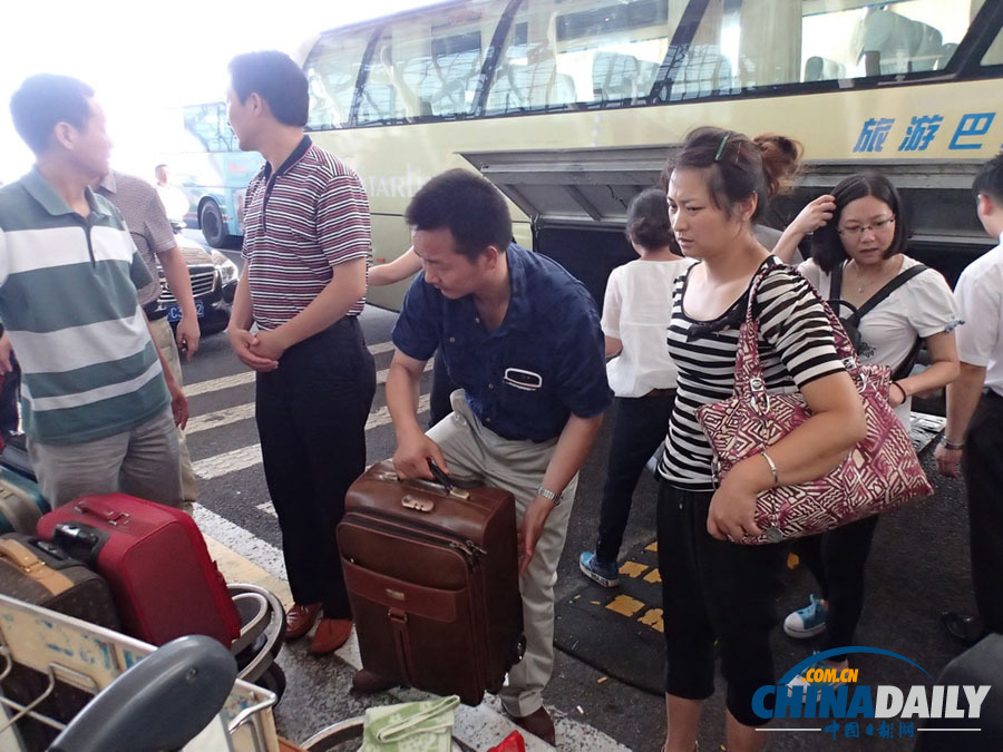 7月8日,在韓亞航空舊金山墜機(jī)事故中罹難的中國乘客王琳佳的父親(前左二)和母親(前右)抵達(dá)上海浦東國際機(jī)場(chǎng)。(高爾強(qiáng) 攝)
