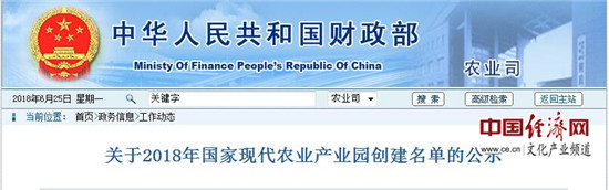 經(jīng)濟日報-中國經(jīng)濟網(wǎng)北京6月25日訊 日前,財政部公示了2018年國家現(xiàn)代農(nóng)業(yè)產(chǎn)業(yè)園創(chuàng)建名單。公示的名單包括21個國家現(xiàn)代農(nóng)業(yè)產(chǎn)業(yè)園,公示期為6月22日至6月26日。