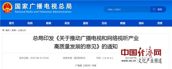 關(guān)于推動(dòng)廣播電視和網(wǎng)絡(luò)視聽產(chǎn)業(yè) 高質(zhì)量發(fā)展的意見