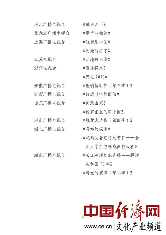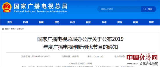 經(jīng)濟(jì)日報-中國經(jīng)濟(jì)網(wǎng)北京7月15日訊 7月14日,國家廣播電視總局公布了2019年度廣播電視創(chuàng)新創(chuàng)優(yōu)節(jié)目。