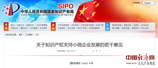 中國經(jīng)濟(jì)網(wǎng)北京10月14日訊 中國經(jīng)濟(jì)網(wǎng)文化產(chǎn)業(yè)頻道記者從國家知識(shí)產(chǎn)權(quán)局網(wǎng)站獲悉,國家知識(shí)產(chǎn)權(quán)局近日印發(fā)了《關(guān)于知識(shí)產(chǎn)權(quán)支持小微企業(yè)發(fā)展的若干意見》(以下簡(jiǎn)稱《意見》)。據(jù)中國經(jīng)濟(jì)網(wǎng)文化產(chǎn)業(yè)頻道記者了解,該《意見》從扶持小微企業(yè)創(chuàng)新發(fā)展、完善小微企業(yè)知識(shí)產(chǎn)權(quán)服務(wù)、提高小微企業(yè)知識(shí)產(chǎn)權(quán)運(yùn)用能力、優(yōu)化小微企業(yè)知識(shí)產(chǎn)權(quán)發(fā)展環(huán)境4個(gè)方面,提出了支持小微企業(yè)創(chuàng)新成果在國內(nèi)外及時(shí)獲權(quán)、完善小微企業(yè)專利資助政策、扶持知識(shí)產(chǎn)權(quán)服務(wù)業(yè)小微企業(yè)等15條具體措施。