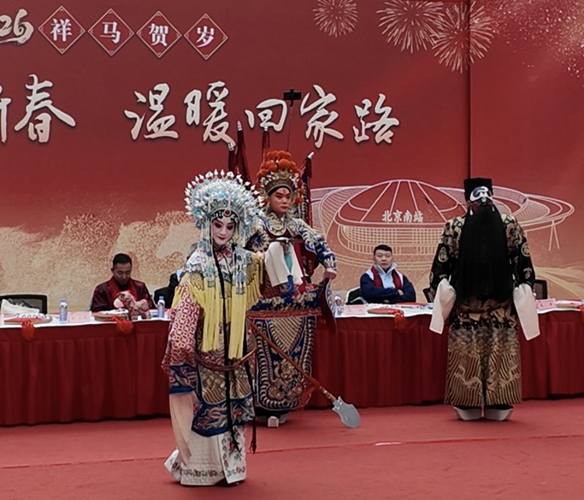 2月10日農(nóng)歷小年,北京南站候車大廳上演戲曲快閃。中國(guó)經(jīng)濟(jì)網(wǎng)記者鞠然/攝
