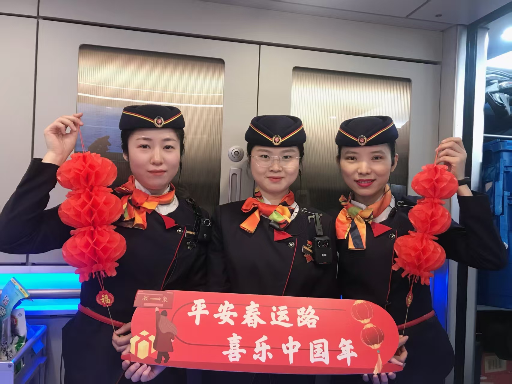 2月10日,G6002次列車上開展“高鐵迎新春,幸福中國(guó)年”特色活動(dòng)。(國(guó)鐵廣州局供圖)