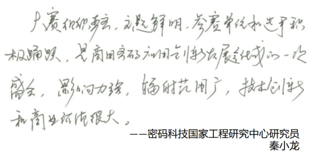 賽后,密碼科技國家工程研究中心研究員秦小龍、中國電力科學(xué)研究院高級工程師李智虎、中國科學(xué)院大學(xué)網(wǎng)絡(luò)空間安全學(xué)院教授/博導(dǎo)王躍武、國家信息技術(shù)安全研究中心商密評測主任吳冬宇等多位專家評委給大賽提出了寶貴的建議和意見。