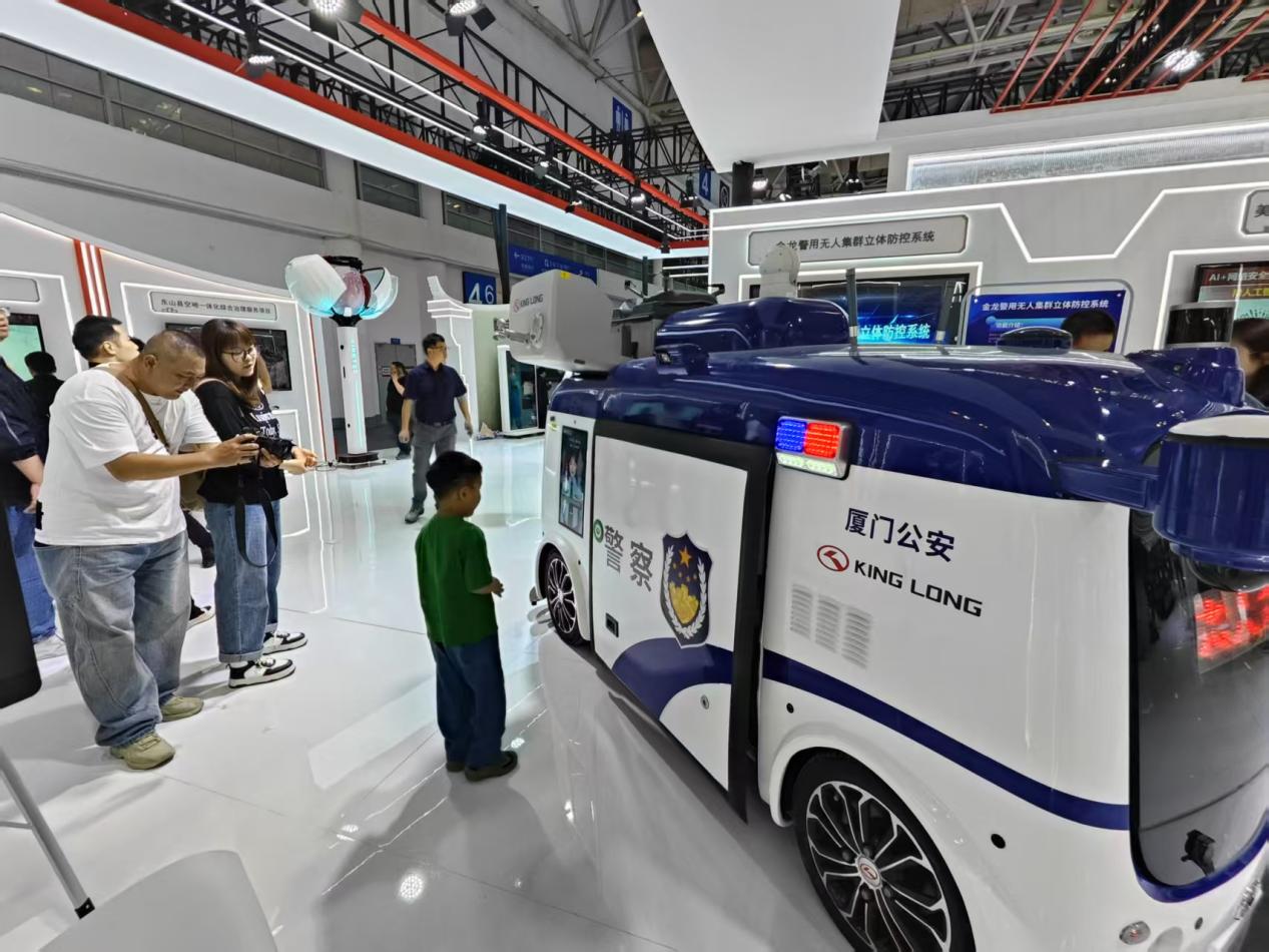頭頂無人機、肚藏機器狗……集多種科技于一身的無人安防警車吸引了小朋友的目光。 中國經(jīng)濟網(wǎng)記者梁木攝