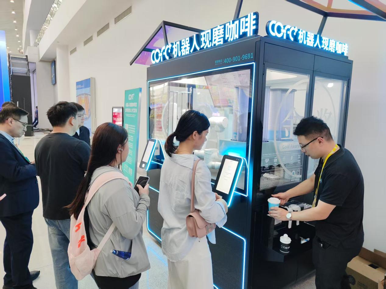 機器人現(xiàn)磨咖啡約50秒即可制作完成,成為現(xiàn)場的餐飲“打卡點”。 中國經(jīng)濟網(wǎng)記者梁木攝