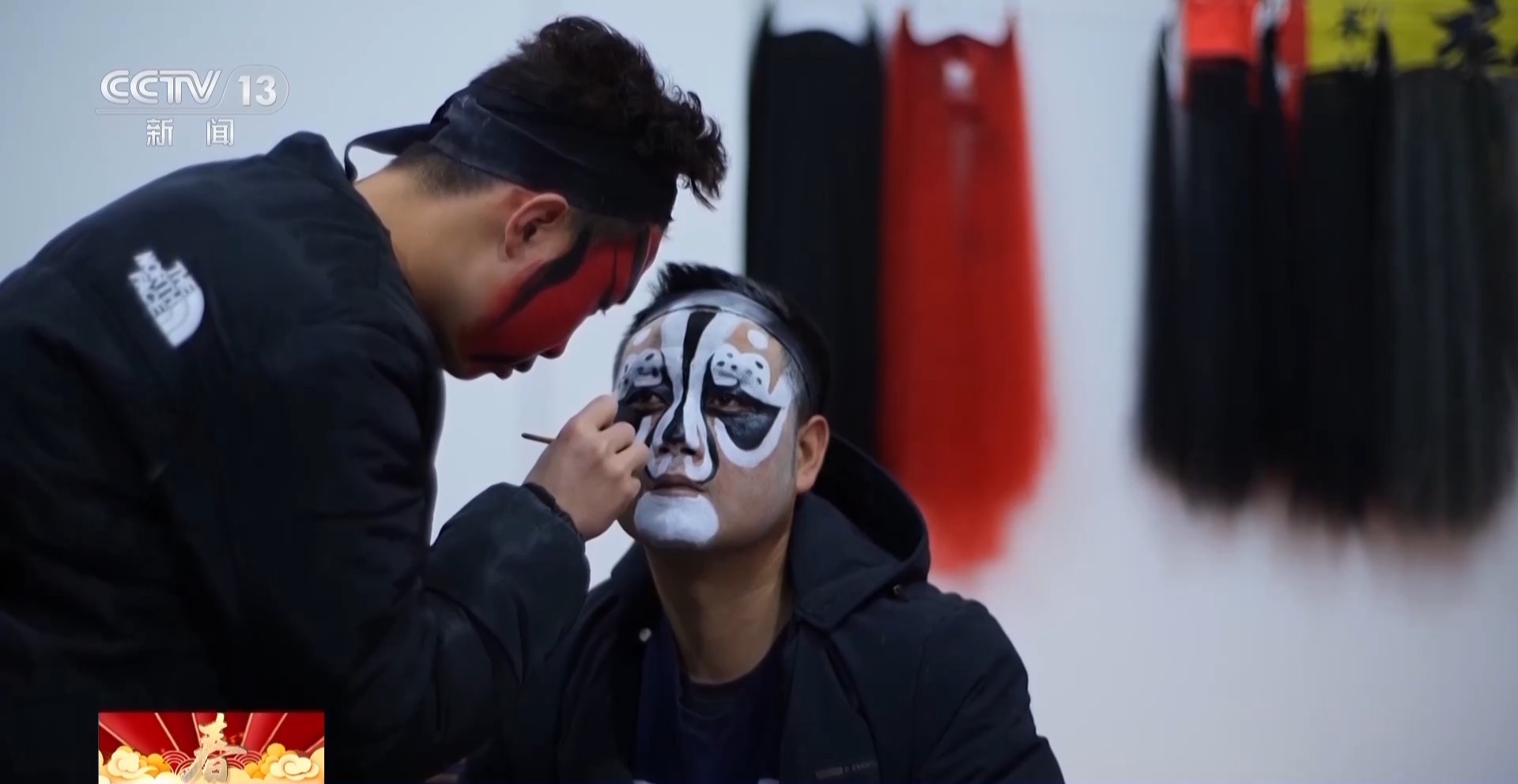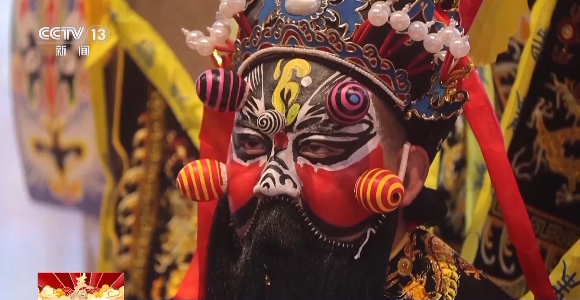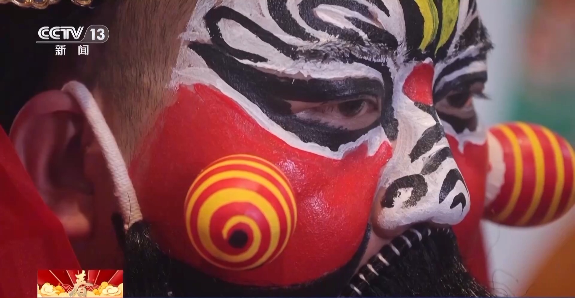總臺(tái)央視記者 何莉:這個(gè)角色就是社火當(dāng)中的黑虎趙公明,人們認(rèn)為他可以除瘟消災(zāi)、帶來(lái)財(cái)運(yùn)。他臉上凸起,看起來(lái)非常立體,而這些凸起就是用普通的雞蛋殼制作而成。
