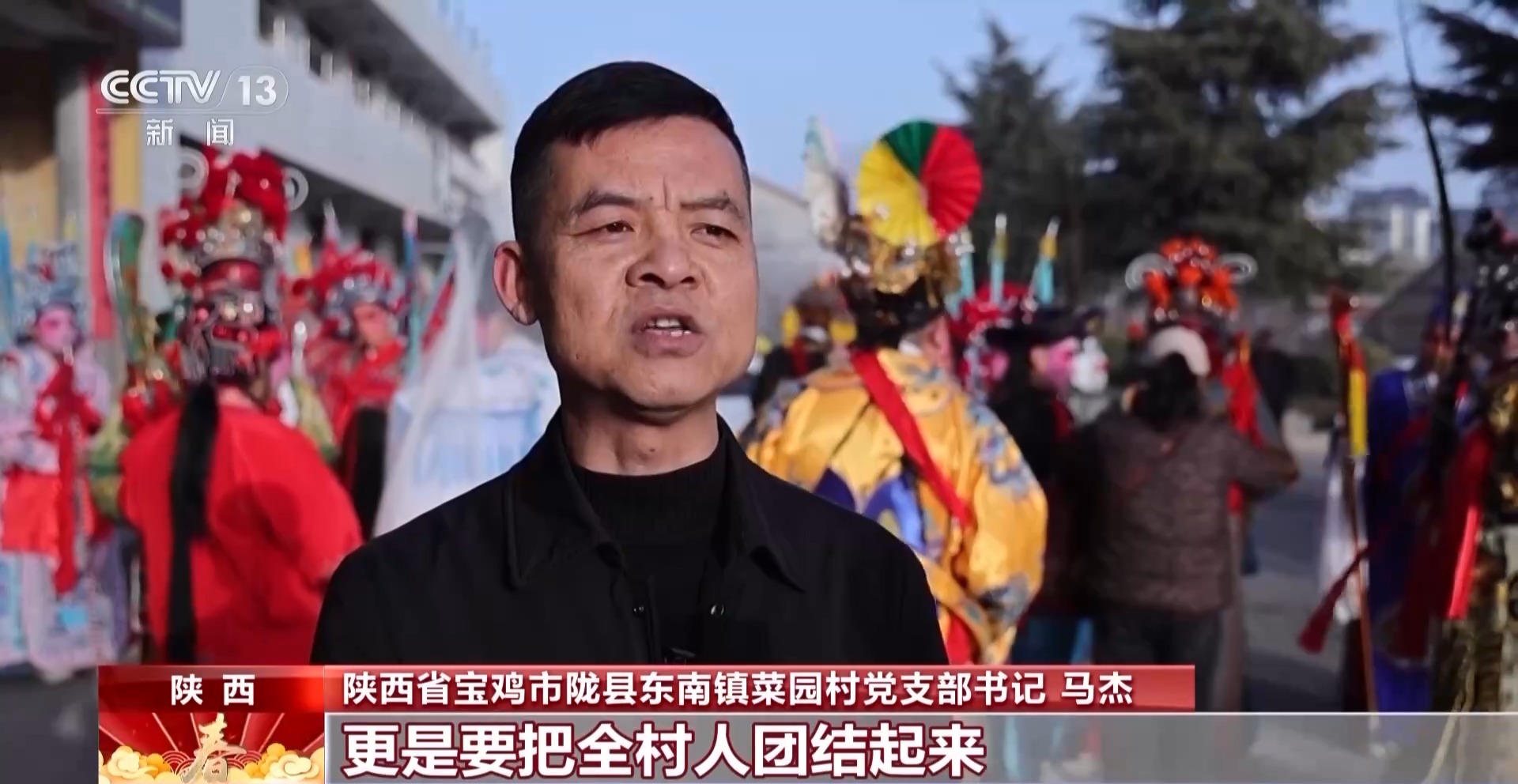陜西省寶雞市隴縣東南鎮(zhèn)菜園村黨支部書(shū)記 馬杰:過(guò)年耍社火不光是圖個(gè)過(guò)年熱鬧,更是要把全村人團(tuán)結(jié)起來(lái)。老人傳技藝、中年挑大梁、娃娃學(xué)本領(lǐng),也讓村子凝心聚力奔向好日子。