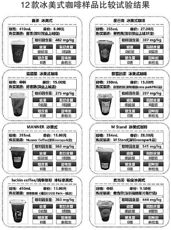 記者從深圳市消委會(huì)了解到,2023年11月至今年2月,深圳市消委會(huì)對(duì)市面上銷售的24款現(xiàn)制咖啡飲品開(kāi)展比較試驗(yàn),測(cè)評(píng)參照GB 7101—2022《食品安全國(guó)家標(biāo)準(zhǔn) 飲料》、GB/T 30767—2014《咖啡類飲料》、GB 2760—2014《食品安全國(guó)家標(biāo)準(zhǔn)食品添加劑使用標(biāo)準(zhǔn)》等國(guó)家標(biāo)準(zhǔn),對(duì)樣品的理化指標(biāo)(咖啡因含量)、營(yíng)養(yǎng)指標(biāo)(能量、脂肪、總糖)、甜味劑(糖精鈉、阿斯巴甜、安賽蜜、甜蜜素)等項(xiàng)目進(jìn)行檢測(cè)。