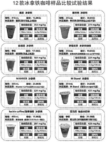 相比而言,12款冰拿鐵咖啡樣品的糖含量、脂肪、能量的檢測(cè)數(shù)值比冰美式咖啡樣品要高,但12款冰拿鐵咖啡樣品的糖含量均達(dá)到標(biāo)準(zhǔn)的“低糖”要求。