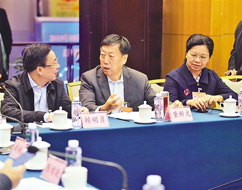 左圖 3月10日,全國(guó)政協(xié)民建界別在駐地舉行小組會(huì)議。會(huì)前,全國(guó)政協(xié)委員蒙曉靈、董新光、賴明勇(從右至左)就“如何探索生態(tài)優(yōu)先、綠色發(fā)展為導(dǎo)向的新路子”展開交流。 本報(bào)記者 高興貴攝
