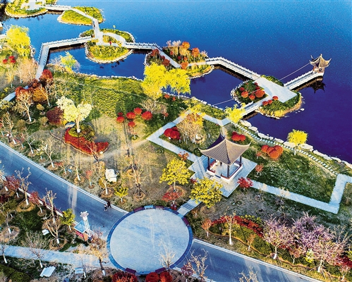 4月7日拍攝的江蘇省連云港市東??h水晶公園。近年來(lái),東??h堅(jiān)持走“生態(tài)優(yōu)先、綠色發(fā)展”之路,通過(guò)實(shí)施生態(tài)修復(fù),河道、村莊綜合整治等多項(xiàng)管理機(jī)制,為當(dāng)?shù)卮蛟炝恕氨趟{(lán)天、岸綠花香”的良好生態(tài)。