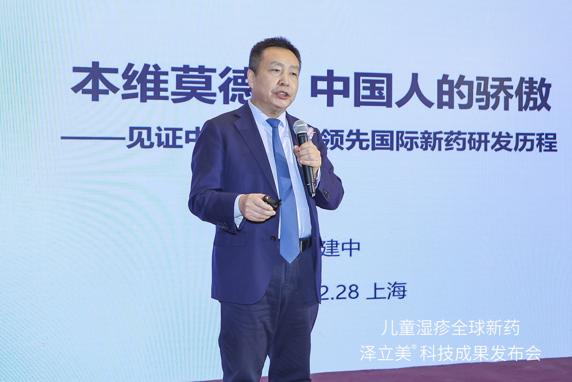 12月28日,兒童濕疹全球新藥澤立美科技成果發(fā)布會在上海舉行。圖為北京大學(xué)人民醫(yī)院皮膚科張建中教授作主題報告。