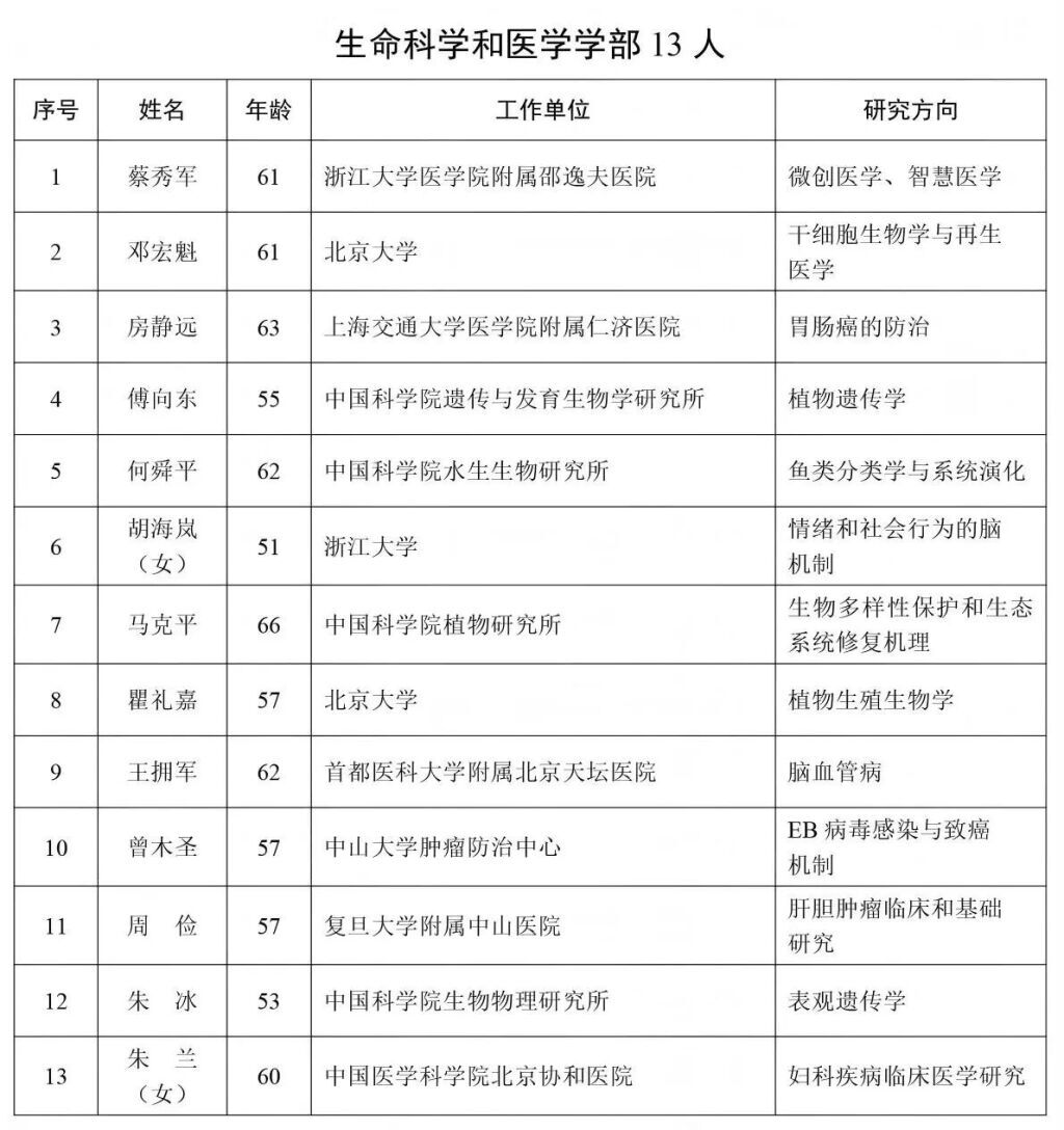 中國科學(xué)院選舉產(chǎn)生了73名中國科學(xué)院院士和27名中國科學(xué)院外籍院士,其中生命科學(xué)和醫(yī)學(xué)學(xué)部13人。