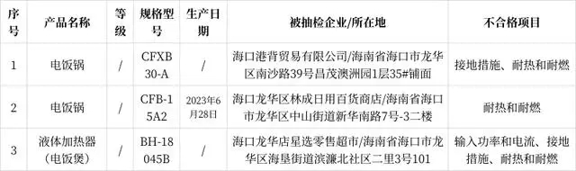 2023年海口市電飯煲產(chǎn)品監(jiān)督抽查質(zhì)量不合格產(chǎn)品