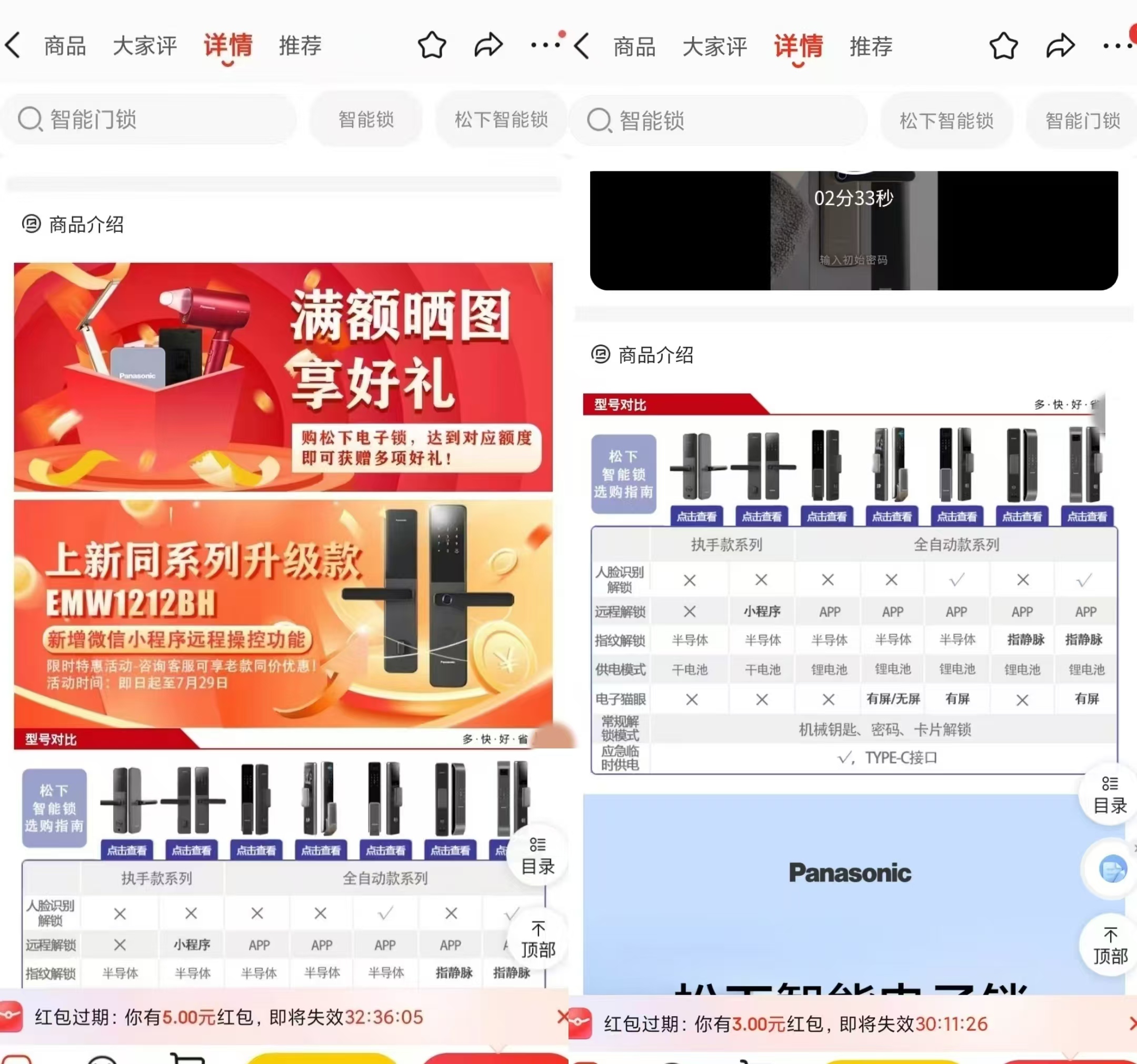 松下智能門鎖的商品介紹頁已做調(diào)整(前后對(duì)比)。資料圖片