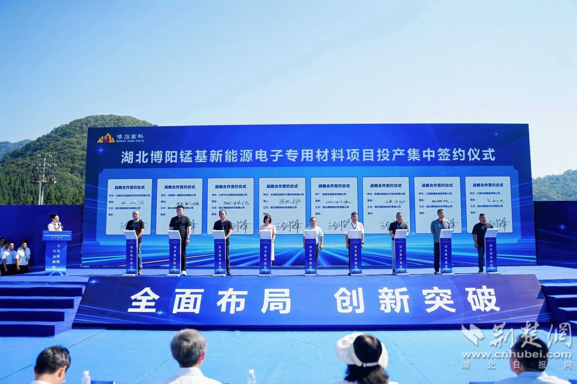 湖北博陽錳基新能源電子專用材料項(xiàng)目投產(chǎn)集中簽約儀式。(黃婉蓉 攝)