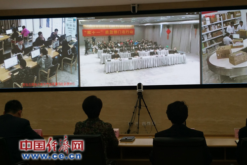 國(guó)家質(zhì)檢總局與設(shè)在杭州的質(zhì)檢總局電子商務(wù)產(chǎn)品質(zhì)量風(fēng)險(xiǎn)監(jiān)測(cè)中心(杭州)進(jìn)行了視頻連線(xiàn),全過(guò)程監(jiān)管。中國(guó)經(jīng)濟(jì)網(wǎng)記者蘇蘭/攝
