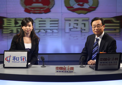 全國(guó)人大代表、山東禹王實(shí)業(yè)有限公司董事長(zhǎng)兼總裁劉錫潛(右)做客中國(guó)經(jīng)濟(jì)網(wǎng)(王耀峰 攝)