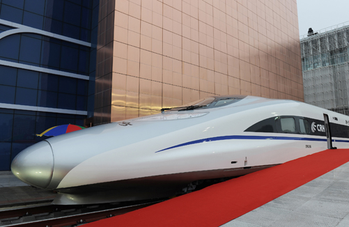 全球最快列車——中國國產(chǎn)時速380公里高速鐵路機車日前正式下線,明年將亮相京滬高鐵。它的設(shè)計制造者——中國南車集團一舉成為引領(lǐng)全球高鐵技術(shù)的新貴。