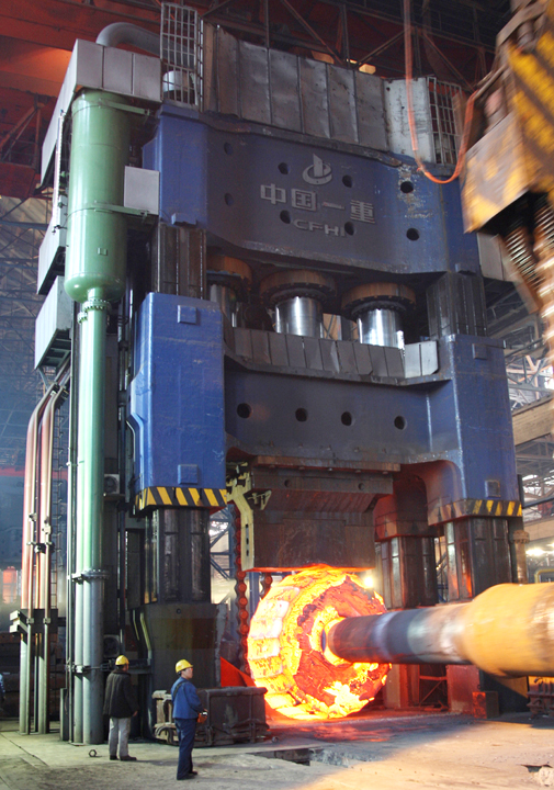 在鍛壓裝備生產(chǎn)領(lǐng)域,有一臺令中國一重人驕傲和自豪的設(shè)備。這臺設(shè)備就是中國一重自行設(shè)計并制造的當(dāng)時國內(nèi)首臺、世界最先進(jìn)的“新鋼鐵巨人”———1.5萬噸自由鍛造水壓機。中國一重在這臺設(shè)備的研制中,獨創(chuàng)了多項具有自主知識產(chǎn)權(quán)、代表世界先進(jìn)水平的設(shè)計技術(shù)!