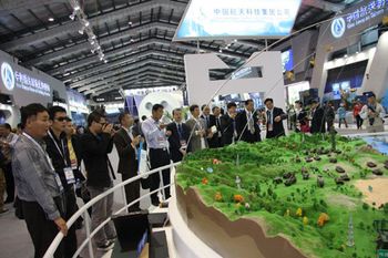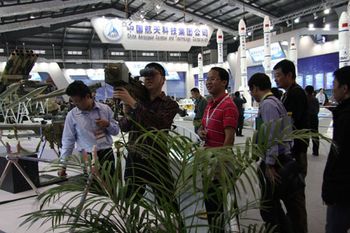 正在舉行的2010年珠海航展上,中國航天科技集團(tuán)公司共設(shè)了三個展區(qū),即宇航展區(qū)、防務(wù)展區(qū)和航天技術(shù)應(yīng)用展區(qū)。