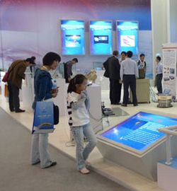 在動態(tài)交通信息體驗(yàn)區(qū),一位觀眾拿起體驗(yàn)區(qū)的電腦鍵盤、PDA、手機(jī)等終端設(shè)備,搜索地點(diǎn),選擇路線,實(shí)時了解周邊地理交通信息。當(dāng)了解到從事動態(tài)交通信息服務(wù)的這家公司已經(jīng)排名到全球第三時,他不禁翹起了大拇指。
