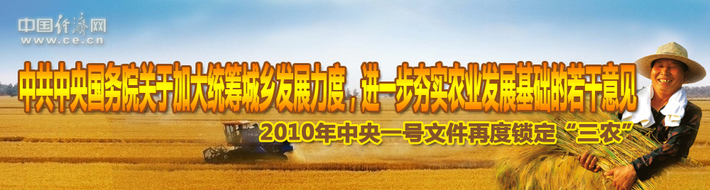 2010年中央一號(hào)文件以“加大統(tǒng)籌城鄉(xiāng)發(fā)展力度、進(jìn)一步夯實(shí)農(nóng)業(yè)農(nóng)村發(fā)展基礎(chǔ)”為主題,充分體現(xiàn)了中央關(guān)于加強(qiáng)“三農(nóng)”工作的一貫要求,指明了鞏固和發(fā)展農(nóng)業(yè)農(nóng)村經(jīng)濟(jì)好形勢(shì)的根本方向。